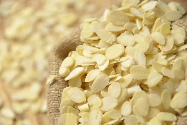 Se obin din migdale crude decojite. Au o aromă delicioasă de nucă cremoasă, culoare crem deschisă și textură fermă și proaspătă. Fulgii de migdale sunt un ingredient convenabil și natural pentru a adăuga un plus de crocant și aromă cerealelor, amestecurilor de produse, produselor de patiserie și rețetelor dulci sau sărate. Fulgii de migdale se consumă ca atare sau se adaugă la rețete așa cum sunt. Alternativ, prăjiți-le ușor într-o tigaie uscată, la foc mic, pentru a adăuga un plus de culoare și aromă prăjită. Fulgii de migdale sunt grozavi în muesli și granola sau se presară peste terciuri sau iaurt.