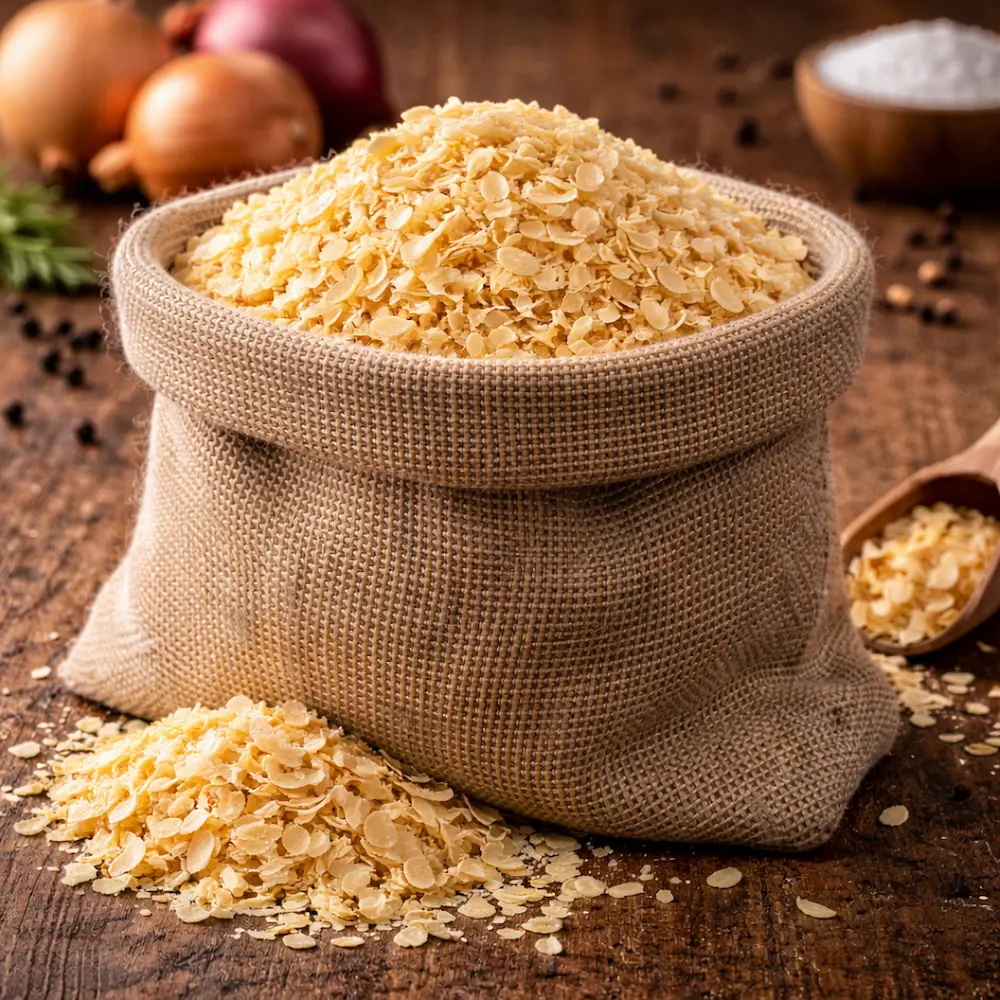 Acest ingredient este potrivit și pentru mixuri de condimente sau pentru preparate la cuptor. Fulgii de ceapă completează perfect gustul altor ingrediente și oferă preparatelor o aromă intensă.