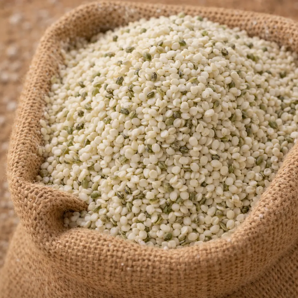 Semințele de cânepă decorticată conțin peste 30% grăsimi. Sunt extrem de bogate în doi acizi grași esențiali, acidul linoleic (omega-6) și acidul alfa-linolenic (omega-3). De asemenea, conțin acid gamma-linolenic, care a fost legat de mai multe beneficii pentru sănătate. Sunt o sursă excelentă de proteine, deoarece peste 25% din caloriile lor totale provin din proteine de înaltă calitate. Aceasta este cu mult mai mult decât alimentele similare, cum ar fi semințele de chia și semințele de in, ale căror calorii sunt de 16-18% proteine. Semințele de cânepă decorticată sunt, de asemenea, o sursă excelentă de vitamina E și minerale, cum ar fi fosfor, potasiu, sodiu, magneziu, sulf, calciu, fier și zinc.